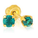 حلق طبي جميل مطلي بالذهب عيار 14 قيراط مرصع بحجر كريستال أخضر اللون .