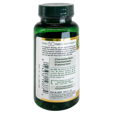 مكمل غذائي مكون من العناصر المهمة لتعزيز الصحة العامة للجسم، يحتوي على فيتامين د3 الشكل الأكثر فاعلية من فيتامين د والذي يتم تصنيعه في الجسم نتيجة للتعرض لأشعة الشمس مما يزيد من أهمية ناتشرز باونتي لتعويض نقص فيتامين د3 الناتج عن قلة التعرض للشمس وسوء التغذية.
