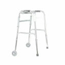 مشاية بعجل رباعية الأرجل قابلة للطي ومصممة من الألمنيوم المقاوم للتآكل والصدأ.