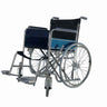 كرسي متحرك بحجم متوسط مصنوع من الألمنيوم ومواد مقاومة للتآكل والصدأ قابل للطي مزود بفرامل لمنع الانزلاق.