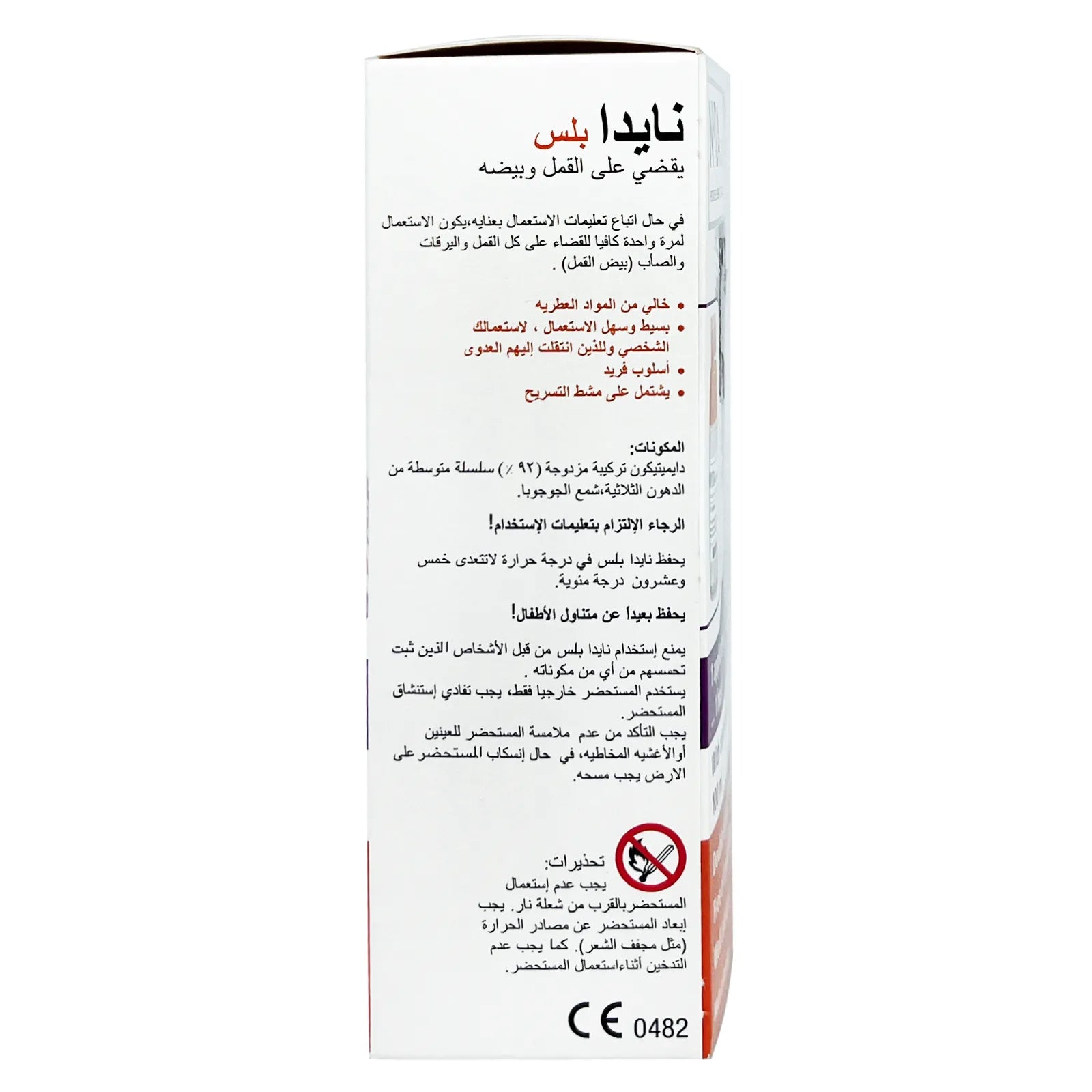 بسبب التوتر السطحي المنخفض، ينتشر لوشن نيدا بلس لمكافحة القمل بسهولة على فروة الرأس و يتغلغل بعمق في الجهاز التنفسي لقمل الرأس.