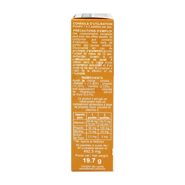• أقراص استحلاب ثري تشينز مع خلاصة البروبوليس ( العكبر ) وفيتامين سي والزعتر والمنثول، لحماية وتهدئة وترطيب الحلق بالإضافة لتخفيف التهاب الحلق.