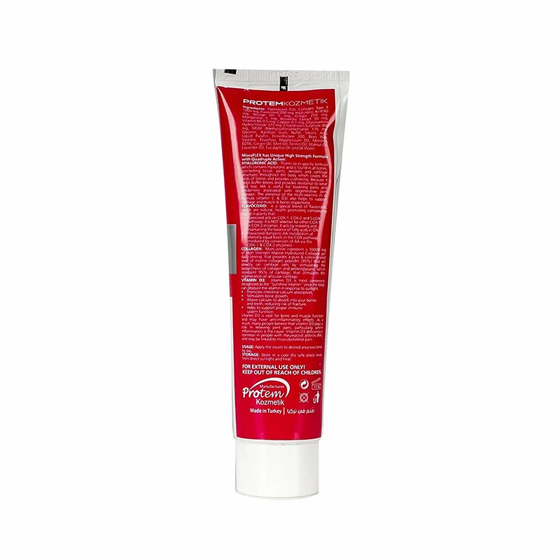 • الكولاجين: المكون النشط الرئيسي في كريم موفا فليكس، يحفز تركيزه العالي البالغ 1000 مجم تكوين بروتيوغليكان الضروري لتجدد الغاضريف.