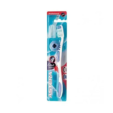تتميز فرشاة الأسنان استيرا متوسطة النعومة بشكل شعيرات فريد من نوعه للمساعدة على تنظيف الأسنان بعمق.