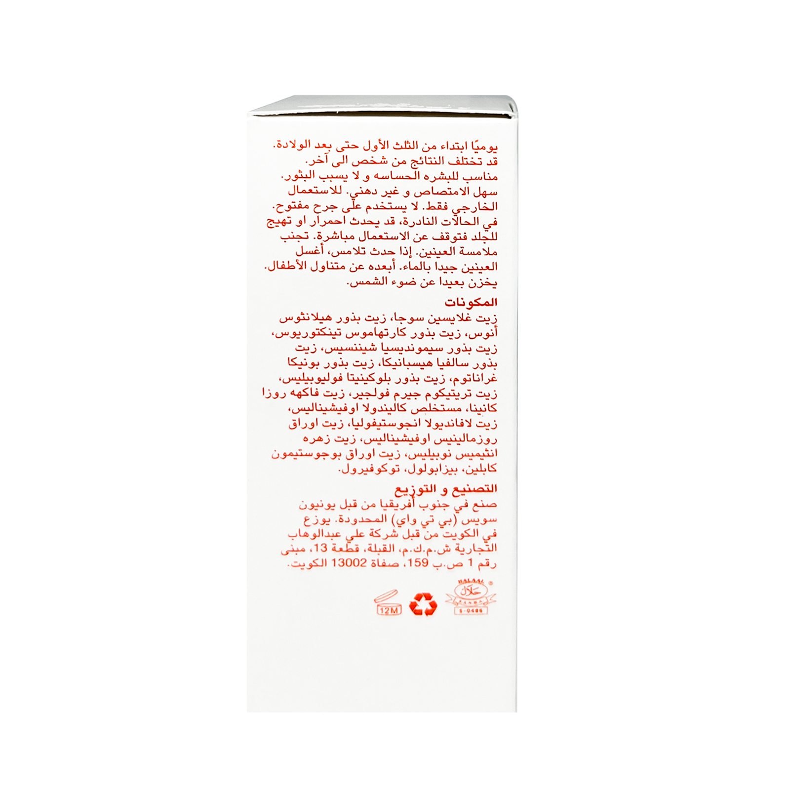 زيت بيو أويل الطبيعي للعناية بالبشرة هو منتج طبيعي بالكامل ثبت سريريًا أنه يساعد في تحسين مظهر الندبات وعلامات التمدد. تحتوي تركيبته الطبيعية 100٪ على 14 زيتًا استثنائيًا لروتينك اليومي للعناية بالبشرة. تمتص التركيبة الفريدة بسهولة في الجلد.