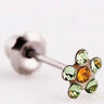 حلق طبي جميل على شكل زهرة مصنوعة من الستانلس ستيل المضاد للصدأ والمرصعة بأحجار الكريستال باللون الزبرجد والتوباز.
