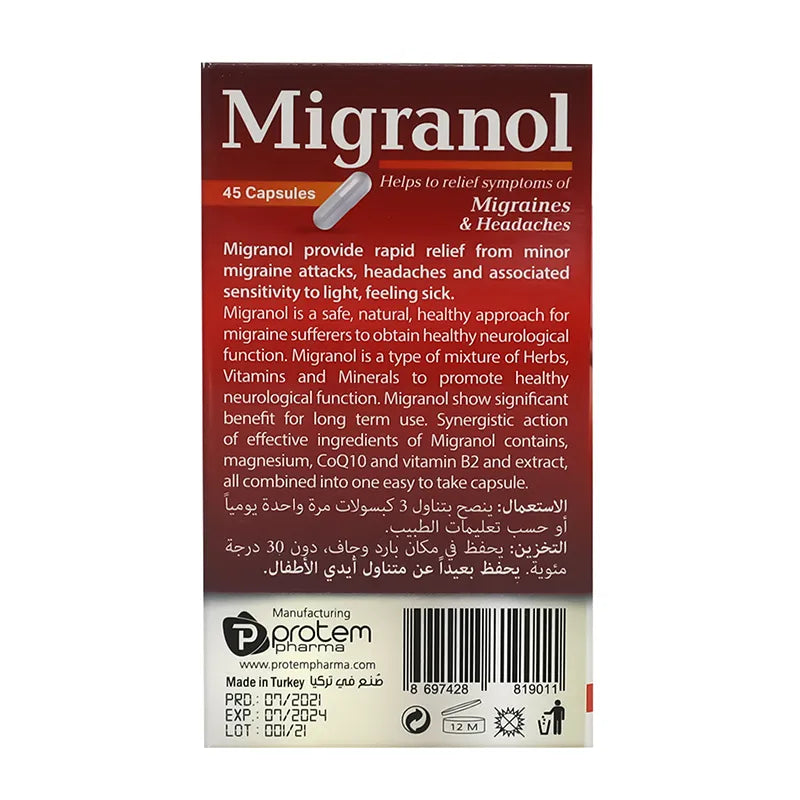 ميجرانول 45 كبسولة لعلاج الصداع النصفي والصداع