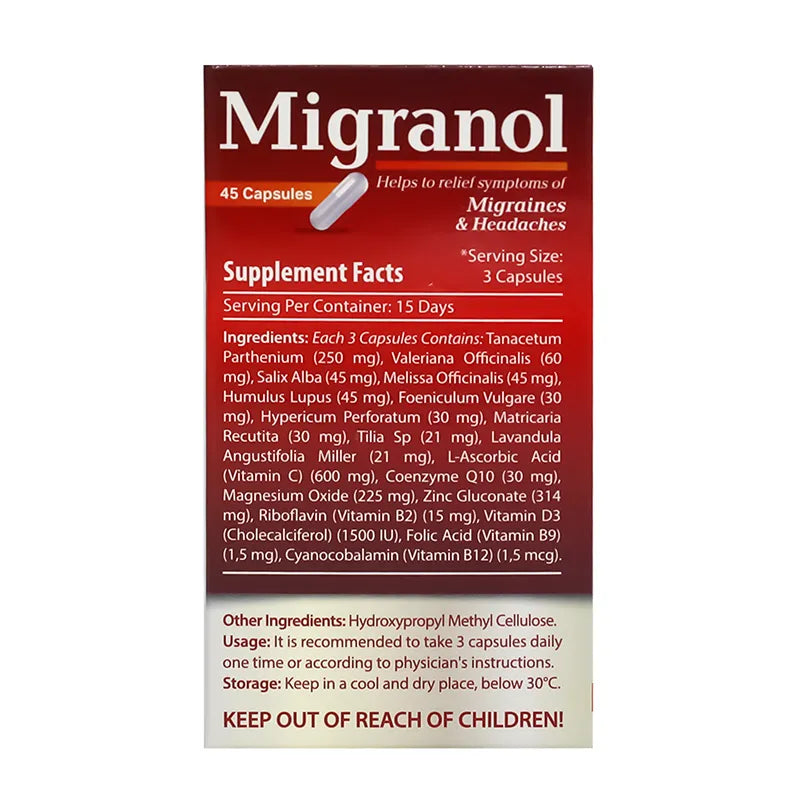 ميجرانول هو كبسولات تتكون من خليط الأعشاب والفيتامينات والمعادن لتعزيز صحة الوظيفة العصبية.