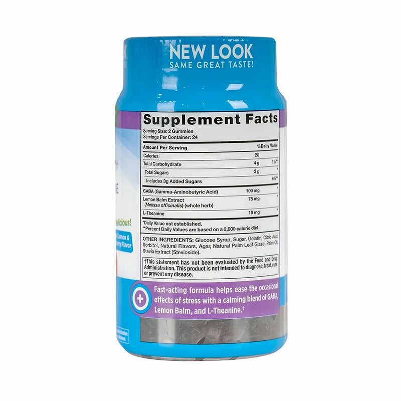 The gummies are formulated to contain the effective GABA, Lemon balm extract, and L-theanine as active ingredients.