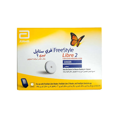 Free Style Libre 2 Sensor for measuring blood sugar With glucose alarms to know when glucose level is high or low by your smart phone to keep you safe.
