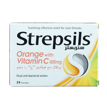 Strepsils Orange with Vitamin C with orange flavor for fast, soothing, and effective relief from the discomfort of sore throats and minor mouth infections.